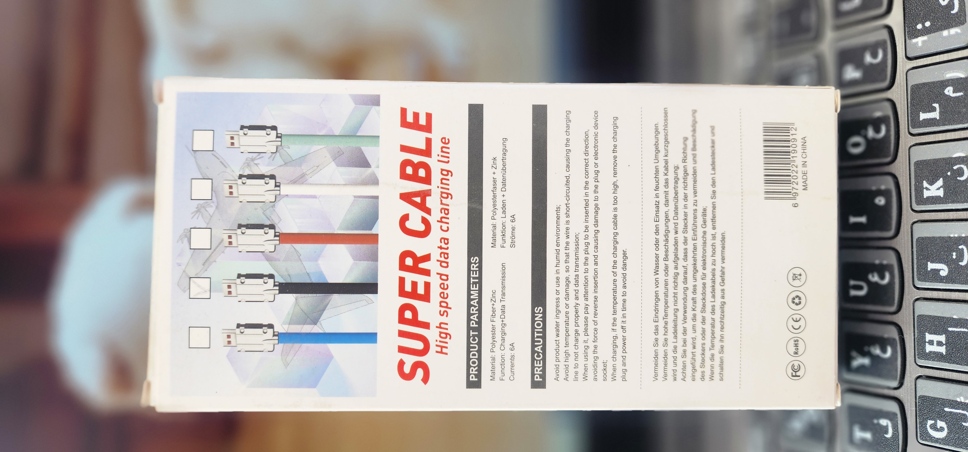 کابل شارژ سوپر کابل پاور مکس 120w,6A