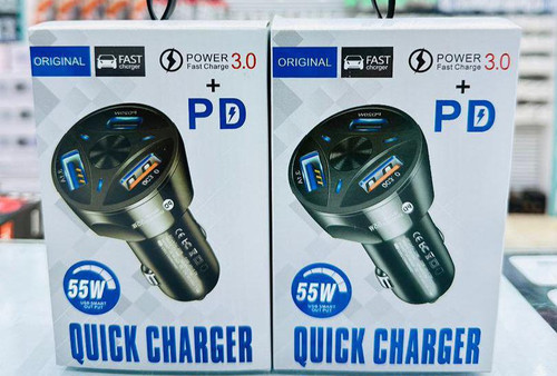 شارژر فندکی فوق سریع 55 وات 3 پورت (QC 3.0 + PD) – شارژ همزمان 3 دستگاه در اتومبیل